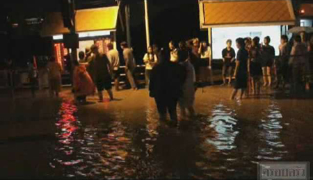 ระดับน้ำในแม่น้ำปิงที่เอ่อล้นตลิ่งเพิ่มสูงขึ้น จุดวัดระดับน้ำเชิงสะพานนวรัฐ ตัวเมืองเชียงใหม่ ระดับน้ำเพิ่มสูงขึ้นถึง 4.86 เมตร สูงเกินจุดวิกฤติกว่า 1 เมตร เอ่อล้นตลิ่งเข้าท่วมบ้านเรือนในเขตเทศบาลนครเชียงใหม่ ถนนเจริญประเทศ ย่านถนนช้างคลาน บางจุดระดับน้ำสูงเกือบ 2 เมตร เจ้าหน้าที่ต้องตัดกระแสไฟฟ้า เกรงจะเกิดอันตราย ย่านการค้าตลาดไนท์บาร์ซาเงียบเหงา พ่อค้าแม่ค้ากว่า 800 ราย ต้องเก็บสิ่งของหนีน้ำโกลาหล แต่บางรายเก็บสินค้าไม่ทันได้รับความเสียหาย