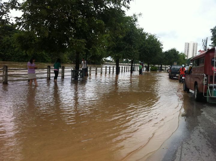 แม่น้ำปิงล้นตลิ่งท่วมตัวเมืองเชียงใหม่เมื่อเวลา 13.00 น. ระดับน้ำปิงที่จุด P1 ที่สะพานนวรัฐ ได้เกินจุดวิฤกติที่ระดับ 3.70 เมตร ไปแล้ว โดยมีปริมาณสูงกว่า 4.40 เมตร ส่งผลให้น้ำเริ่มทะลักเข้าท่วมพื้นที่หลายจุดในเขตตัวเมือง โดยเฉพาะถนนเชียงใหม่ - ลำพูน ใกล้ห้างริมปิง ซุปเปอร์มาเก็ต รวมทั้งชุมชนป่าพร้าวนอก บริเวณโรงแรมรติล้านนา ถนนช้างคลาน สะพานภาค 5 และถนนเจริญประเทศ ขณะที่โรงเรียนในเขตอำเภอเมืองสั่งปิดเกือบทุกโรงเรียน เช่น โรงเรียนมงฟอร์ต, โรงเรียนปรินส์รอยแยลส์วิทยาลัย และโรงเรียนพระหฤทัย ส่วนที่หมู่บ้านเวียงทองน้ำยังไม่ไหลเข้าท่วม แต่ชาวบ้านได้นำกระสอบทรายมาปิดกั้นบริเวณหน้าบ้าน และขนสิ่งของไว้บนที่สูงแล้ว