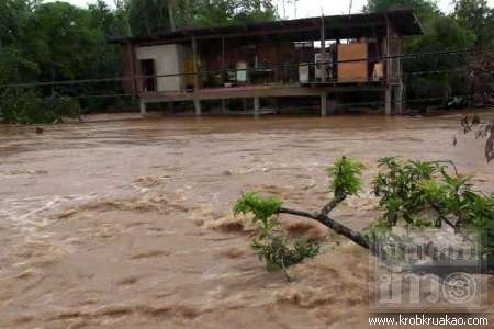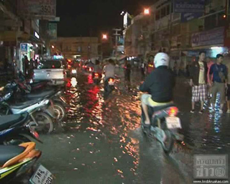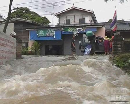 น้ำล้นออกจากประตูระบายน้ำจากคลองหนึ่งไหลทะลักท่วมบ้านเรือนแล้ว เจ้าหน้าที่เร่งป้องตลาดไทเต็มที่