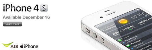 หมายเหตุ : AIS เปิดจอง iPhone 4S แล้ว ตั้งแต่วันที่ 13 ธันวาคม เวลา 9.00 น. และจะเปิดเผยละเอียดอย่างเป็นทางการ ที่ ห้องบอลรูม ศูนย์ประชุมแห่งชาติสิริกิติ์ ตั้งแต่วันที่ 16-18 ธันวาคม