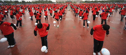 อลังการงานสร้างอีกแล้วสำหรับพี่จีนของเรากับการสร้างสถิติโลกต่าง ๆ นานาขึ้นมาอย่างต่อเนื่อง มาล่าสุด ลูกกลม ๆ ที่ใช้เตะกันไปมาในสนามอย่างลูกฟุตบอลนั้น ก็ได้มีเอี่ยวกับสถิติโลกครั้งใหม่นี้ด้วย เมื่อมีนักเรียนและผู้ที่สนใจในกีฬาฟุตบอลนับพันคน มาร่วมกันเดาะบอลโชว์ จนสามารถทำลายสถิติโลกไปในที่สุด