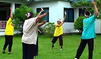 คุณยายบอกว่า ที่ต้องออกกำลังกายทุกวัน ก็เพื่อให้ร่างกาย "ฟิต" นอกจากนั้นการออกกำลังกายยังทำให้รู้สึกสบายใจ แถมสบายตัวอีกต่างหาก และเพราะความฟิตของแก ก็ยังทำให้แพทย์ที่อนามัยมาขอร้องให้แกไปเป็นครูสอนเจ้าหน้าที่ อสม.ให้ซะด้วย (ธรรมดาซะที่ไหนล่ะ...)