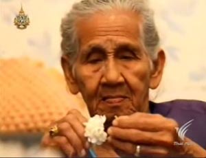 ต้องบอกว่า กิจกรรมสุดโปรดของคุณยายเอื้อน คือการร้อยมาลัยนั่นเอง และไม่น่าเชื่อว่า คุณยายวัย 95 ปี ยังสามารถนั่งร้อยมาลัยได้โดยไม่ต้องใส่แว่นตาเลย ทุกเข็มทุกดอกคุณยายร้อยลงไปได้อย่างแม่นยำสุด ๆ ก่อนจะบอกว่า การร้อยมาลัยนี้ ช่วยให้คุณยายมีสติอยู่กับตัวเอง และสมาธิไม่วอกแวก ส่งผลจิตใจสบายขึ้น ไม่เครียด ที่สำคัญคือ ช่วยให้แกได้มีอะไรทำ เพราะหากไม่มีอะไรทำล่ะก็ คุณยายก็บอกว่าจะรู้สึกหงุดหงิดสุด ๆ