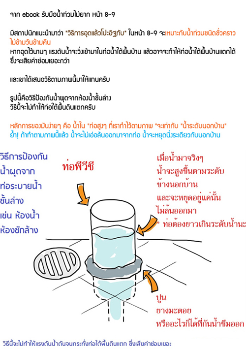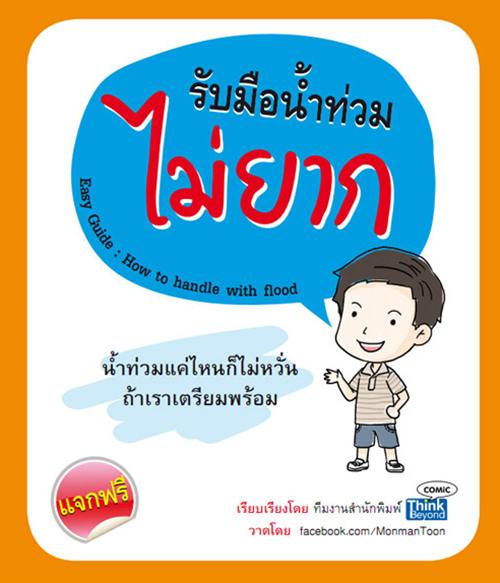 พื้นที่เสี่ยงน้ำท่วมฟังทางนี้.... ประกาศ ประกาศ น้ำจ่อทะลัก อย่าได้วิตก!? ...มาเตรียมตัวรับมือน้ำท่วมกันดีกว่าจ้า เพราะ ณ เวลานี้แทบจะไม่สามารถคาดเดาได้เลยว่า มวลน้ำมหาศาลจะไหลมาเยือนบ้านของเราหรือไม่ ดังนั้น การเตรียมการรับมือจึงเป็นวิธีที่ดีที่สุด และวันนี้เราขอนำเสนอ คู่มือน้ำท่วม ฉบับภาพการ์ตูน เรียบเรียง โดย สำนักพิมพ์ ธิงค์ บียอนด์ บุ๊คส์ วาดโดย คุณ Monman