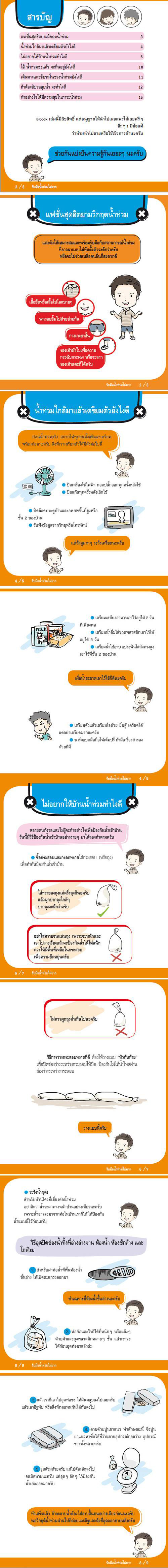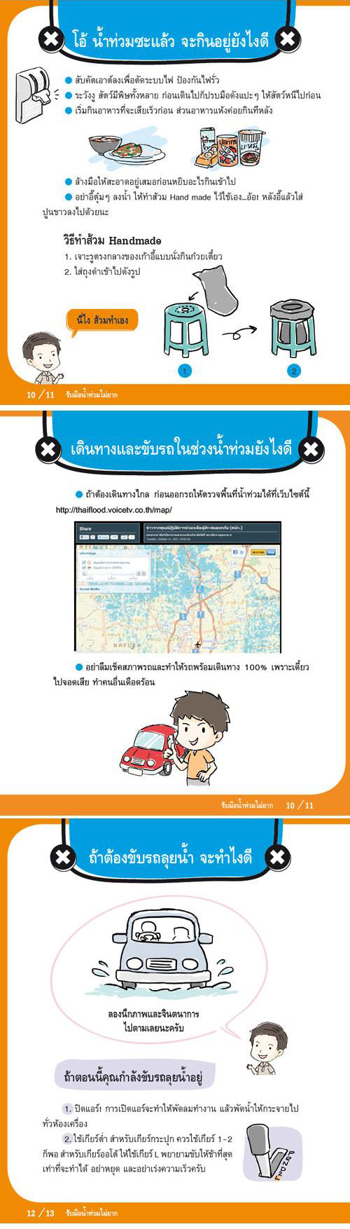 สำหรับ คู่มือน้ำท่วม ฉบับภาพการ์ตูนนี้ เนื้อหาประกอบไปด้วย การเตรียมตัวเมื่อน้ำท่วมเริ่มใกล้เข้ามา กินอยู่อย่างไรเมื่อน้ำท่วม เดินทางและขับรถช่วงน้ำท่วมอย่างไร ความสุขในภาวะน้ำท่วม แฟชั่นช่วงน้ำท่วม ฯลฯ ...ทั้งหมดนี้ จะทำให้เพื่อน ๆ รับมือน้ำท่วมได้ไม่ยากเลยล่ะ ว่าแล้วไปดูกันเลย..