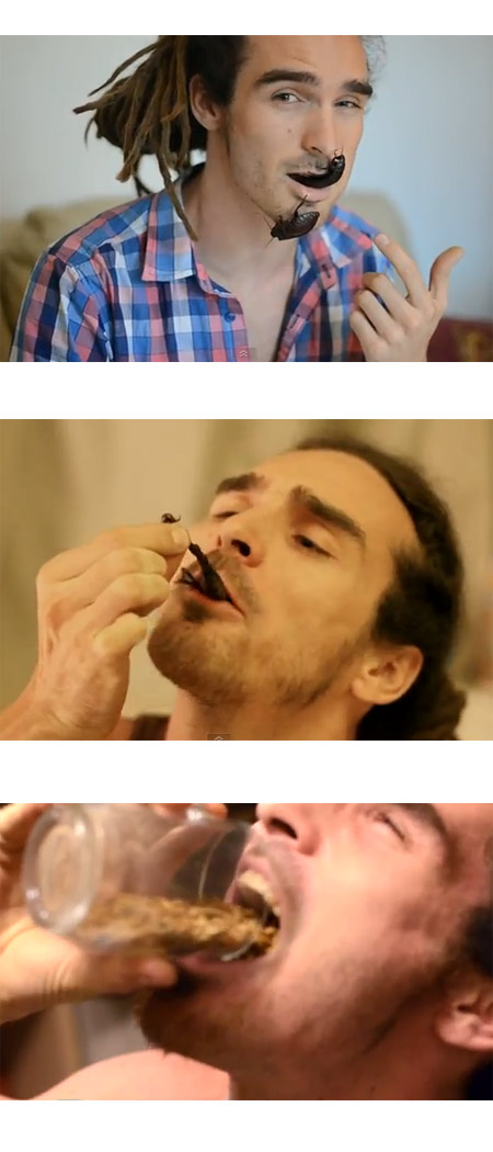โดยหนุ่มคนนี้มีชื่อว่า หลุยส์ โคล วัย 28 ปี จากแดนผู้ดีอังกฤษ ที่มีพฤติกรรมการกินที่พิสดารสุดขั้ว กินสัตว์น่าขยะแขยงได้ทุกชนิด แถมยังกินมันทั้งเป็นอีกด้วยแน่ะ ไม่ว่าจะเป็นสัตว์น่ายี้อย่างหนอน หนูปั่น และแมลงสาบ เขานำมันเข้าปากได้อย่างสบายบรื๋อ แม้จะมีทีท่าว่าจะกินได้อย่างลำบาก แต่เขาก็มีท่าทีพะอืดพะอมเพียงเล็กน้อยเท่านั้นเอง ราวกับสัตว์ที่กำลังดิ้นเหล่านี้เป็นอาหารอันโอชะสุดท้าทายของเขาเลยล่ะ