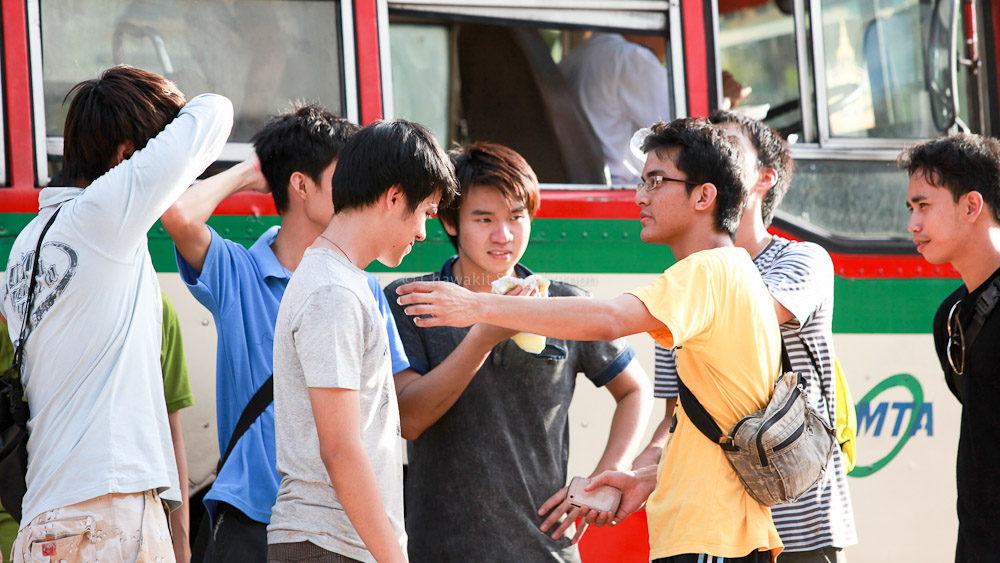 ระหว่างที่ยืนรอรถเมล์เพื่อเดินทางต่อไปยังคลองหก ก็ได้ยินเสียประกาศอยู่ตลอดว่าต้องการแรงงานตรงนั้นตรงนี้ แต่เสียงหนึ่งที่ฟังแล่วทะ:-) ๆ คือ "คลองหกไม่มีใครเค้าไปกันแล้วน้อง ไปนี่ดีกว่า !@#$%^&* เอาล่ะสิ ผมเลยปรึกษากับน้อง ๆ ที่เราเพิ่งรู้จักกันบนรถว่าเอาไง ได้รับคำยืนยันว่า "เราตั้งใจมาแล้วพี่ ยังไงก็ต้องไปให้ถึง" ...แหม่ มันชื่นใจจริงน้องเอ้ย