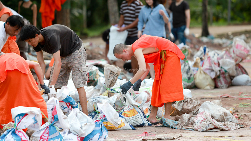 ทั้งขุดทราย ลำเลียง โน่นนั่นนี่ พระท่านมาช่วยโดยไม่ได้แยกแยะเสมือนหนึ่งเป็นเพียงแค่ "ประชาชน"