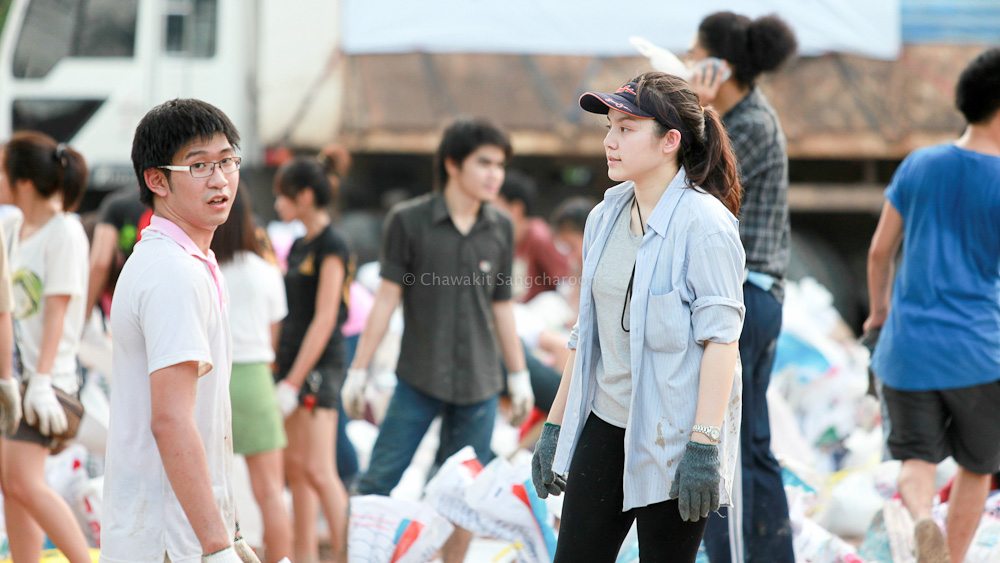 อุทกภัยครั้งนี้ ทำให้เราได้เห็นน้ำใจของเหล่าอาสาสมัครคนรุ่นใหม่ไฟแรงทั้งหลาย เพราะเมื่อใดที่มีการประกาศขออาสาสมัครช่วยแพคของ ช่วยบรรจุถุงทราย ก็จะมีคนจำนวนไม่น้อยเดินทางไปยังจุดนั้น เพื่อช่วยเหลือกันคนละไม้คนละมือที่ดูแล้วเป็นภาพที่น่าประทับใจเอามาก ๆ