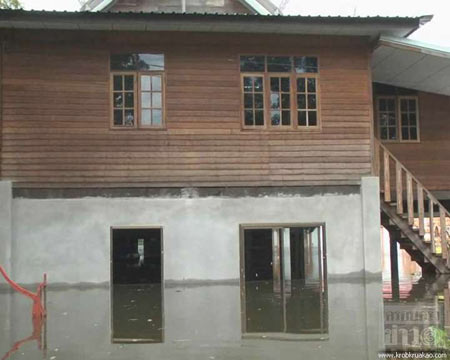 ลองโทรหาอีกบ้าน เขายังไม่ออกบอกว่า น้ำคงไม่ขึ้นเยอะกว่านี้แล้ว (ผมนึกในใจ จะเป็นไปได้ไง เพราะน้ำลงมายังไม่หมด) เมื่อวานโทรไปอีกครั้ง บ้านที่ยังไม่ย้ายออก ก็ย้ายออกเรียบร้อย เพราะน้ำขึ้นเรื่อย ๆ โดยขนของออกมาได้แค่บางอย่าง.....