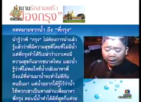 ทำเอาผู้ชมรายการเรื่องเล่าเสาร์-อาทิตย์ หลุดขำก๊ากในยามที่กำลังเครียดแสนเครียดกับวิกฤติน้ำท่วมขึ้นมาเลยทีเดียว เมื่อ "โก๊ะตี๋ อารามบอย" หยิบเอา "จดหมายจากน้ำถึงพี่กรุง" ที่โพสต์เผยแพร่กันในเฟซบุ๊กออกมาอ่านออกอากาศแบบได้อารมณ์สุด ๆ เพื่อหยอกล้อ "น้องน้ำ" ที่กำลังรุกไล่ "พี่กรุง" เข้ามาทุกที ๆ ทำเอา "พี่กรุง" ปั่นป่วนไปหมด เฮ้อ...แถมยังมี "น้องทราย" และ "พี่ทะเล" ออกมาสมทบอีก กลายเป็น "ตำนานรักสามเส้าเมืองกรุง" ไปซะงั้น แต่ยิ่งอ่านก็ยิ่งเรียกเสียงฮาได้เพียบ แถมมีหลายภาคโต้ตอบกันไปมาซะด้วย
