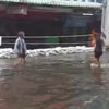 ส่วนตลาดมีนบุรีตอนนี้น้ำท่วมมากกว่า 20 เซนติเมตรแล้ว แต่พ่อค้าแม่ค้ายังคงทำการค้าขายต่อไป คาดว่าประมาณ 10 กิโลเมตร น้ำจะทะลักถึงแยกบางกะปิ