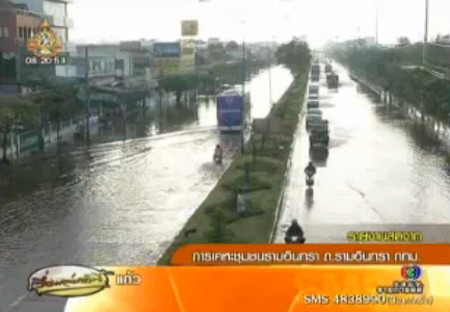 ผู้สื่อข่าว รายการเรื่องเล่าเช้านี้ ออกอากาศผ่านสถานีโทรทัศน์ไทยทีวีสีช่อง 3 รายงานว่า สถานการณ์น้ำท่วมที่ไหลมาจากถนนพหลโยธิน สายไหม วัชรพล ตอนนี้ได้เข้ามาสู่ถนนรามอินทราแล้ว มีความสูงประมาณ 50 เซนติเมตร ทำให้บริเวณนั้น รถยนต์สัญจรไม่ได้ และเซ็นทรัล รามอินทรา ประกาศปิดบริการอีก 1 วัน โดยทางน้ำที่จะไหลท่วมไปที่คันนายาวต่อ