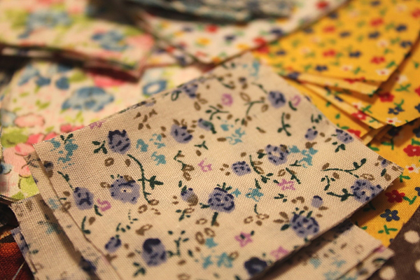 - เศษผ้าค่ะ เอาเศษผ้ามาตัดนะคะ สี่เหลี่ยม สามเหลี่ยมเล็ก ๆ ขนาด 1 นิ้ว 2 นิ้ว ตัดไปเถอะ เท่ากันบ้าง ไม่เท่ากันบ้าง ศิลปะไม่มีขอบเขต