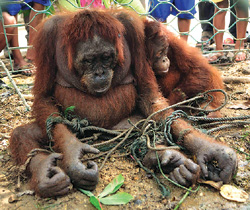 เมื่อวันที่ 24 พฤศจิกายน 2554 โฆษกตำรวจอินโดนีเซีย กล่าวว่า เจ้าของไร่ต้องการปกป้องพืชผลบนเกาะบอร์เนียวจากสัตว์ป่า จึงจ้างคนงานด้วยการตบรางวัลให้ผู้ที่ฆ่าลิงจะได้ตัวละ 100 ดอลลาร์ คนงานยอมรับว่า พวกเขาไล่ฆ่าลิงด้วยการยิง ใช้มีดขนาดใหญ่ฟันและแทงจนตาย ซึ่งชายทั้งสองคนมีโทษจำคุกสูงสุด 5 ปี