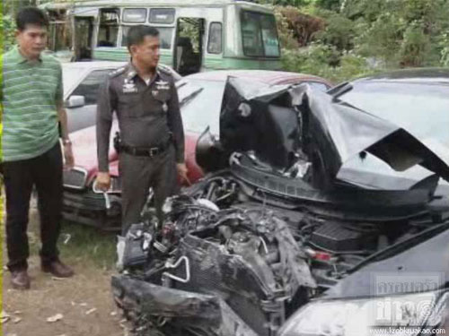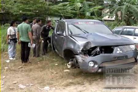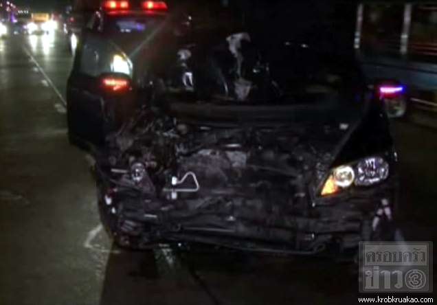 เมื่อไปถึงที่จุดเกิดเหตุ เจ้าหน้าที่พบรถกระบะยี่ห้อมิตซู บิชิ สีดำหมายเลขทะเบียน ถง 6993 กทม. ถูกชนอยู่บริเวณเกาะกลาง สภาพรถพังเสียหายทั้งคัน ใกล้กันนั้น ยังพบรถยนต์ฮอนด้าซีวิค สีดำ หมายเลขทะเบียน ชผ 1959 กทม. สภาพพังยับเยินจอดอยู่ห่างออกไปประมาณ 10 เมตร และเมื่อตรวจสอบภายในรถ ก็พบกระสุนปืนขนาด 9 มม. จำนวน 2 นัด ภายในรถทั้งสองคันด้วย