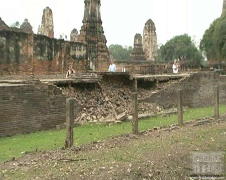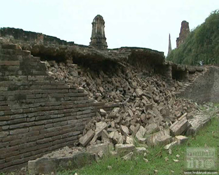 เมื่อวันที่ 30 มกราคมที่ผ่านมา มีรายงานว่า โบราณสถานหลายแห่งในจังหวัดพระนครศรีอยุธยา เริ่มทรุด หลังจากที่แช่น้ำท่วมเป็นเวลานาน กำแพงวัดมหาธาตุเริ่มพังเป็นทางยาวกว่า 10 เมตร ซึ่งสาเหตุมาจากโครงสร้างที่ไม่มั่นคง ผู้ว่าฯ อยุธยาเร่งบูรณะด้วย คาดใช้เวลาซ่อม 1 ปี