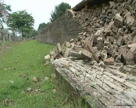 จากการตรวจสอบพบ กำแพงวัดมหาธาตุ ภายในอุทยานประวัติศาสตร์ ด้านทิศเหนือติดกับโบราณสถานวัดราชบูรณะ กว้างประมาณ 1.5 เมตร สูงประมาณ 1.8 เมตร ซึ่งเป็นกำแพงที่ กรมศิลปากร สร้างทับแนวกำแพงเดิม ได้พังถล่มลงมากว่า 10 เมตร ทำให้เนื้ออิฐด้านในพังลงมาด้วย นอกจากนี้ กำแพงที่มีลักษณะเดียวกัน ก็มีทีท่าว่าจะพังลงมา และโบราณสถานมีช่องโหว่หลายจุด สาเหตุคาดว่ามาจากเหตุการณ์มหาอุทกภัยเมื่อปีก่อน ดังนั้น กรมศิลปากรจึงนำเชือกมาขึงบริเวณที่กำแพงชำรุด กันไม่ให้นักท่องเที่ยวเข้าไป