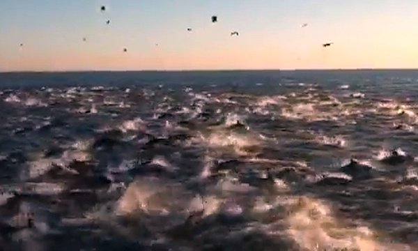 พบโลมากว่าร้อยตัวเบียดเสียดกันกระโดดกันขึ้่นมาเหนือผิวน้ำนอกชายฝั่งแคลิฟอร์เนียของสหรัฐฯ ขณะนี้ยังไม่ทราบเพราะสาเหตุอะไร