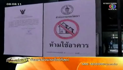ส่วนอีกฉบับเป็นประกาศการห้ามใช้อาคาร มีใจความระบุว่า "ฝ่าฝืนมีความผิด มีโทษจำคุกไม่เกิน 6 เดือน ปรับไม่เกินหนึ่งแสนบาท หรือทั้งจำทั้งปรับและปรับวันละสามหมื่นบาทตลอดเวลาที่ฝ่าฝืน"
