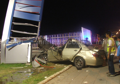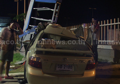 สลด! นักศึกษา มธ. ศูนย์รังสิต กลับจากเที่ยวสถานบันเทิง ขับรถเสยเกาะกลางถนน หมุนตลบชนป้ายปั๊มเอ็นจีวี ดับคาที่