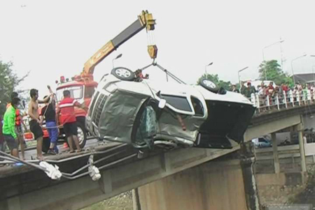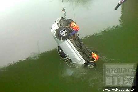 นักศึกษาสาววัย 26 ปี ขับรถเสียหลัก หลังฝนตกถนนลื่น พุ่งชนราวสะพานร่วงแม่น้ำแม่กลองลึก 7 เมตร เสียชีวิต