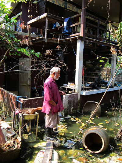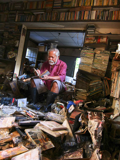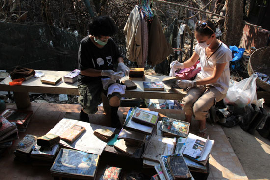อ.สุชาติ สวัสดิ์ศรี ก็เป็นอีกบุคคลหนึ่งที่ได้รับผลกระทบจากน้ำท่วมครั้งนี้ไม่น้อย โดยเฉพาะอย่างยิ่ง หนังสือ ซึ่งถือได้ว่าคลังความรู้มหาศาล ที่เขาสะสมมากว่าค่อนชีวิต จำนวนนับแสนเล่ม ทั้งหนังสือ นิตยสารเก่าแก่อายุกว่า 50 ปี กลับมลายหายไปในพริบตาพร้อมกับสายน้ำ ซึ่งจนถึงขณะนี้ภารกิจการเก็บกู้ซากหนังสือของเขาก็ยังไม่เสร็จสิ้น และยังคงเดินหน้าไปอย่างช้า ๆ แต่ก็เป็นการทำงานที่ต้องแข่งกับเวลา เพราะฤดูฝนใหม่ก็ใกล้เข้ามาอีกครั้ง โดยสิ่งที่ยังขาดแคลนในเวลานี้ก็คือ ชั้นหนังสือที่แข็งแรงทนทาน รวมถึงห้องเก็บหนังสือที่สูงพ้นน้ำเพื่อที่จะยังคงรักษาคลังหนังสือให้ดำรงอยู่ต่อไป