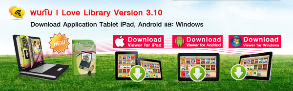 3) I Love Library Viewer for Tablet โปรแกรมสำหรับเปิดอ่านหนังสืออิเล็กทรอนิกส์ที่สร้างจาก I Love Library Builder บน Tablet iPad , Android และ Windows