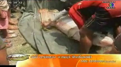 ชาวบ้าน อ.วังน้อย จ.พระนครศรีอยุธยา จับปลาช่อนยักษ์ได้ 3 ตัว ใหญ่สุดหนัก 150 กิโลกรัม บริเวณประตูน้ำพระอินทร์ ตั้งราคาขายกว่า 5 หมื่นบาท