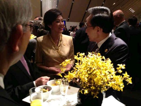 ล่าสุด ช่วงค่ำของวานนี้ (27 มีนาคม) ภายหลังจากเสร็จสิ้นการเข้าร่วมประชุมนิวเคลียร์ซัมมิท นางสาวยิ่งลักษณ์ ได้เดินทางเข้าร่วมงานเลี้ยงรับรองและงานเลี้ยงอาหารค่ำแบบกาล่า ดินเนอร์ โดยมี นายลี มยอง บัค ประธานาธิบดีสาธารณรัฐเกาหลี พร้อมด้วยภริยาเป็นเจ้าภาพ