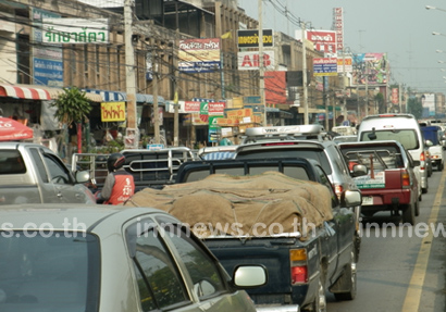 ชลบุรี รถติดหนักแต่เช้า เหตุ คนแห่ไหว้บรรพบุรุษ เส้นบายพาสชลบุรี และชลบุรี - บ้านบึง ติดหนัก