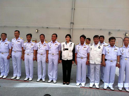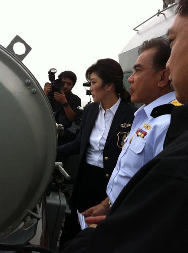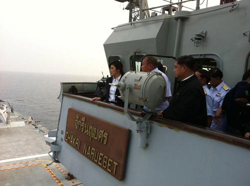 นายกรัฐมนตรี ชมการฝึกกองทัพเรือ ประจำปี 2555 บนเรือหลวงจักรีนฤเบศร พร้อมเผยว่า มั่นใจในแสนยานุภาพกองทัพไทย