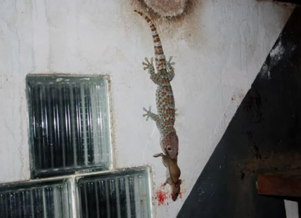 เจ้าของบ้านที่พิษณุโลก เผยภาพตุ๊กแกตัวใหญ่กินหนู เผยได้ยินเสียงหนูร้องจึงไปดู และบันทึกภาพเอาไว้ เพราะไม่เคยเห็นมาก่อน