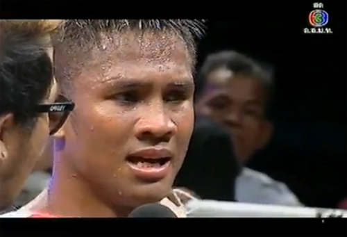 "ครับ ในวันนี้ผมได้ชกรายการนี้ ไม่ใช่ทำเพื่อผมคนเดียว หรือทำเพื่อใคร แต่ผมทำเพื่อคนไทยทุกคน ที่จ้องดูผม เฝ้ารอดูผม ผมเลยขึ้นชก ทุกอย่างมันออกมาจากในใจลึก ๆ ที่ผมขึ้นชกในครั้งนี้ ผมชกเพื่อชาวสุรินทร์ ชกเพื่อชาวสำโรงทาบ และเพื่อคุณพ่อที่ได้มาดูผมในวันนี้ แต่น่าเสียดายที่คุณแม่ผมเสียไปแล้ว อย่างไรก็ตาม ผมดีใจมากที่ได้ทำตามฝัน ที่ได้ขึ้นชกในวันนี้ ถึงแม้วันพรุ่งนี้ผมจะต้องติดคุก ผมก็ยอมครับ" บัวขาว กล่าว