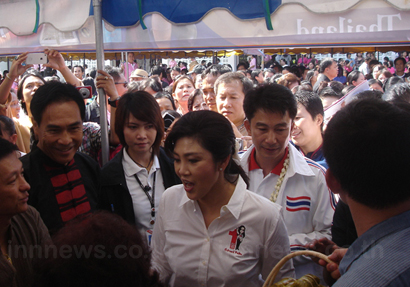 นายกรัฐมนตรี ลงพื้นที่ตลาดสดสันกำแพง พร้อม "เยาวภา" และแกนนำพรรคเพื่อไทย ช่วย "เกษม" หาเสียงเลือกตั้งซ่อม เขต 3 เชียงใหม่ มั่นใจชนะแน่ ขณะราคาสินค้าทรงตัว กำชับพาณิชย์ดูแล ปัดตอบคำถามเรื่อง "อากง" เสียชีวิต