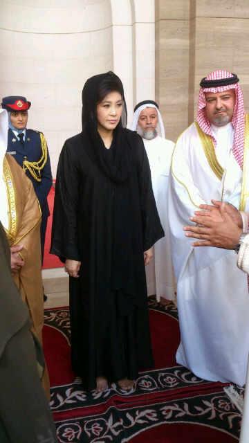 เมื่อวานนี้ (14 พฤษภาคม) หลังจากที่นางสาวยิ่งลักษณ์ ชินวัตร นายกรัฐมนตรี รับประทานอาหารกลางวันที่นายกรัฐมนตรีบาห์เรน พระราชทานเลี้ยง ในช่วงที่นางสาวยิ่งลักษณ์ มีภารกิจไปเยือนบาห์เรนนั้น ก็ได้เดินทางไปเยี่ยมชมมัสยิดกลาง Al Fateh Grand Mosque โดยมีอิหม่ามคอยต้อนรับ และบรรยายประวัติความเป็นมากับคำสอนศาสนาอิสลาม ซึ่งทางนางสาวยิ่งลักษณ์ ก็ได้ใส่ชุดประจำชาติของสตรีบาห์เรน มีสีดำสนิท คลุมตั้งแต่ศีรษะถึงข้อเท้าด้วย
