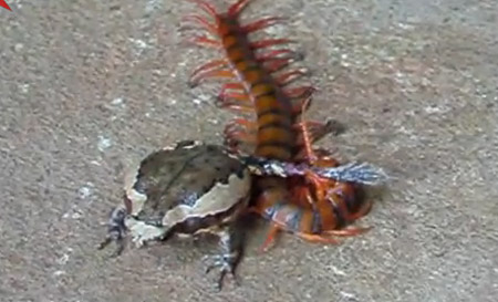 โลกเรานั้นหนอ เป็นวงเวียนวัฎจักรห่วงโซ่อาหาร โดยผู้ที่อ่อนแอกว่าก็จะตกเป็นเหยื่อของผู้ล่า ดังเช่นคลิปวิดีโอนี้ ถูกเผยแพร่ลงบนเว็บไซต์ยูทูบ ความยาวกว่า 3 นาที 10 วินาที ซึ่งผู้อัพโหลดระบุว่า ถ่ายที่ อ.หาดใหญ่ จ.สงขลา เป็นเรื่องราวของวงจรชีวิตสัตว์โลก นำเสนอเรื่องราวผู้ล่าและเหยื่อ จากการที่มีผู้ไปพบและถ่ายคลิป ตะขาบตัวเขื่อง กัดเข้าที่ขาหลังอึ่งอ่างตัวหนึ่ง ที่พยายามดิ้นรนเอาตัวรอดสุดชีวิต พยายามกระโดดหนีแล้วหนีเล่า แต่ตะขาบก็ไม่คิดจะปล่อยเหยื่อให้รอดไปได้ พยายามกัดและม้วนตัวรัดอึ่งอ่างอยู่ตลอด ซึ่งสุดท้ายแม้จะลุ้นอย่างไร เหยื่อก็เป็นอาหารของผู้ล่าอยู่ดี