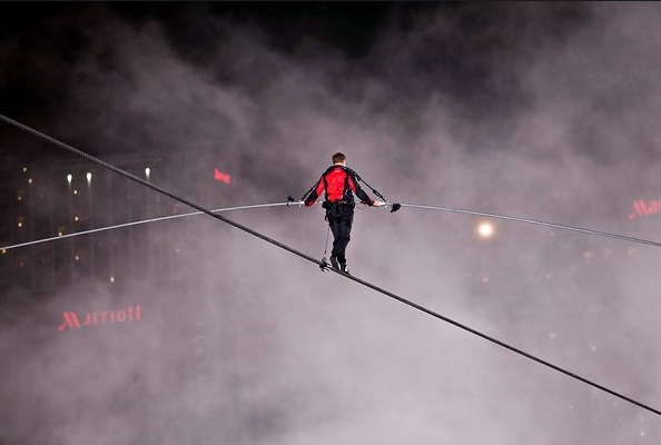 รายงานระบุว่า นิก วอลเลนดา สมาชิกของครอบครัวนักกายกรรมกลางหาว "เดอะ ฟลายอิง วาลเลนดาส์" ขอท้าตายด้วยการทำสถิติสุดหวาดเสียวด้วยการไต่ลวดข้ามน้ำตกไนแองการาเป็นระยะทาง 60 เมตร ที่ระดับความสูง 550 เมตร ซึ่งเบื้องล่างเป็นกระแสน้ำตกเชี่ยวกราก แถมต้องฝ่าหมอกหนาทึบ พร้อมกับกระแสลมกระโชกอย่างแรง โดยมีสถานีโทรทัศน์เอบีซีถ่ายทอดสดเหตุการณ์ครั้งประวัติศาสตร์นี้อย่างใกล้ชิด ซึ่งจะคอยสัมภาษณ์เขาระหว่างการไต่ลวดเป็นครั้งคราว สภาพที่เขาเผชิญ และวิธีการรับมือของเขา