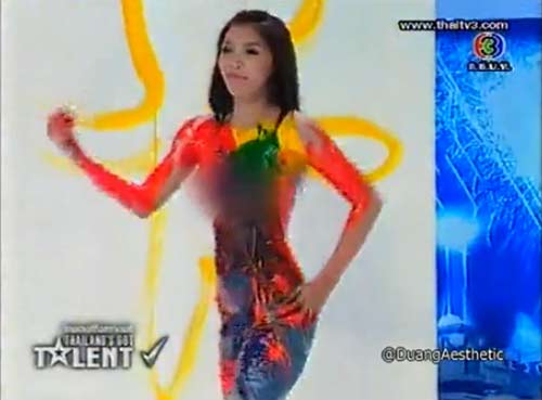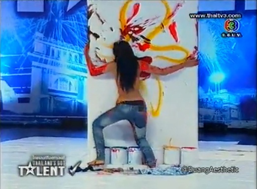 การแข่งขัน "ไทยแลนด์ก็อตทาเลนท์ 2012" ในสัปดาห์ที่ผ่านมา สร้างความฮือฮาจนกลายเป็นทอล์คออฟเดอะทาวน์เลยทีเดียว กับโชว์เด็ด ๆ ของผู้แข่งขันหญิงคนหนึ่ง ที่มาแสดงทักษะทางด้านศิลปะ ชนิดที่ผู้ชมต้องอึ้ง! ทึ่ง! ซี๊ด! เนื่องจากเธอใช้หน้าอกแทนพู่กันละเลงสีไปทั่วผืนผ้าใบ