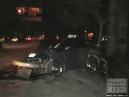 วันนี้ (20 มิถุนายน) เวลา 03.00 น. เจ้าหน้าที่ตำรวจ สภ.บางแก้ว จ.สมุทรปราการ เดินทางไปตรวจสอบอุบัติเหตุรถชนตอหม้อทางด่วนบูรพาวิถี ทางคู่ขนานขาเข้า หลักกิโลเมตรที่ 6 ถนนบางนา- ตราด เมื่อไปถึงที่เกิดเหตุพบรถยนต์ ยี่ห้อ ฮอนด้า แอ๊คคอร์ท สีบรอนซ์ ซึ่งด้านท้ายชนอัดติดอยู่กับต้นไม้เกาะกลางถนนในสภาพตัวถังรถฉีกหายไปครึ่งคันตั้งแต่หัวจดท้ายพังยับเยิน