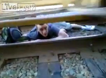 เมื่อวันที่ 21 มิถุนายน เว็บไซต์เดลิเมลของอังกฤษ เปิดเผยคลิปวิดีโอสุดช็อก เมื่อหนุ่มรายหนึ่งเกิดนึกพิเรนทร์ ลงไปนอนให้รถไฟขบวนยาวเหยียดวิ่งผ่าน และไม่เพียงแค่นั้น เขายังมุดออกจากใต้ท้องรถไฟระหว่างที่รถไฟกำลังวิ่งอยู่บนร่างเขาอีกด้วย!!