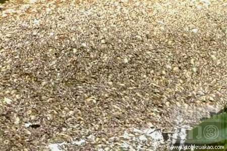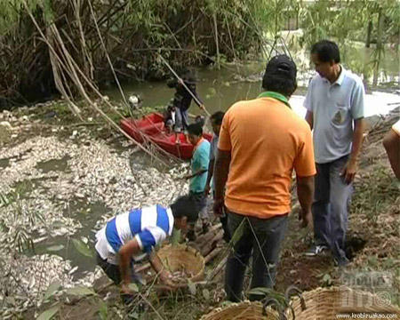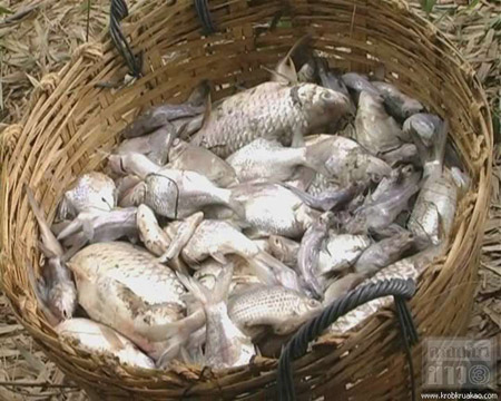 ชาวบ้านลำตะคองร้องปลาหลายหมื่นตัวลอยอืดตายเป็นแพ เหม็นฟุ้งกลางเมืองโคราช คาดโรงงานปล่อยสารพิษฝนชะลงน้ำ ปลาขาดออกซิเจนเฉียบพลัน ต้องใช้เวลากว่า 2 วันกำจัดซากปลา