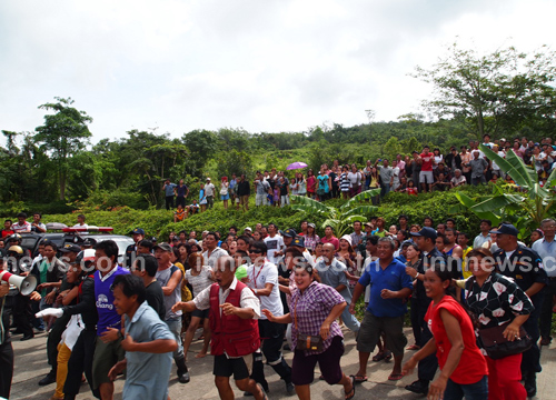 ทั้งนี้ เจ้าหน้าที่ได้นำตัวผู้ต้องหาฝ่าวงล้อมฝูงชนกว่า 300 คน ที่รอรุมทำร้ายผู้ต้องหาบริเวณบ้านหลังดังกล่าว โดยเจ้าหน้าที่สามารถคุมตัวผู้ต้องหาเข้าไปภายในบ้านได้สำเร็จ และใช้เวลาประมาณ 30 นาที ในการทำแผน จากนั้นได้พาผู้ต้องหากลับไปขึ้นรถกระบะ เพื่อออกจากที่เกิดเหตุ แต่มีชาวบ้าน ซึ่งส่วนใหญ่เป็นชายฉกรรจ์จำนวนหนึ่ง รุมเข้าทำร้ายผู้ต้องหา จนเป็นเหตุให้เจ้าหน้าที่ตำรวจนอกเครื่องแบบได้รับบาดเจ็บ 2 นาย มีเลือดไหลออกทางปาก และนิ้วหัก 2 นิ้ว