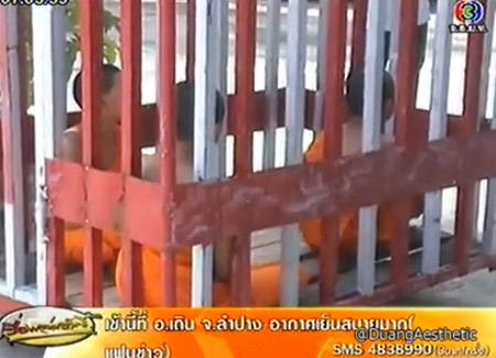 ทั้งนี้ จากการตรวจสอบกรงที่ขัง ทราบว่า เป็นกรงไม้ที่หมู่บ้านสร้างขึ้นเพื่อใช้ขังพวกวัยรุ่นที่ชอบชกต่อย ทะเลาะวิวาทกันในงานรื่นเริงต่าง ๆ แต่พอไม่มีงาน กรงก็จะว่างลง และถูกพบว่านำมาใช้ขังสามเณร ชาวบ้านจึงได้ร้องเรียนเข้ามา จนกล่าวเป็นข่าวดังกล่าว ผู้สื่อข่าวจึงพยายามสอบถามไปที่เจ้าอาวาสวัด แต่ท่านติดกิจนิมนต์อยู่ ส่วนพระกุ้งนั้น คนทำความสะอาดที่วัดบอกว่า ไม่รู้ว่าไปอยู่ไหนแล้ว