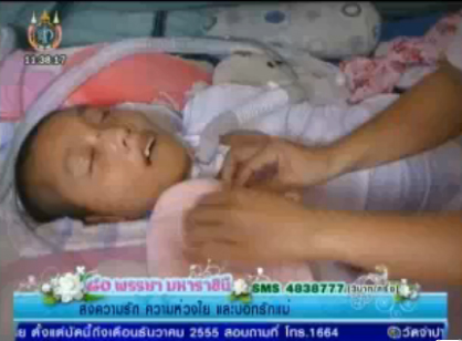 นางศรีวิไล กล่าวต่อว่า แพทย์ได้วินิจฉัยว่า น้องบอมบ์มีอาการติดเชื้อไวรัสจากสัตว์ปีกขึ้นสมอง ทำให้เกิดอาการสมองอักเสบอย่างรุนเเรง โดยผู้ที่ติดโรคนี้มักเสียชีวิตเเทบทุกราย ซึ่งน้องเอง ต้องใช้เวลารักษาตัวในห้องไอ.ซี.ยู กว่า 1 ปี 6 เดือน แต่อาการก็ไม่ดีขึ้น ทำให้เเพทย์ต้องเจาะคอเพื่อใช้เครื่องช่วยหายใจ ทำให้เงินเก็บหมดลง แต่ทางโรงพยาบาลและหน่วยงานต่าง ๆ ก็ช่วยอนุเคราะห์ ให้ความช่วยเหลือในเรื่องค่ารักษาพยาบาล แต่อาการก็ไม่ดีขึ้น
