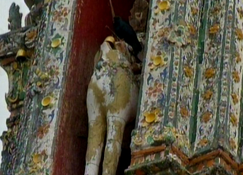 พระปรางค์วัดอรุณฯ หนึ่งในสัญลักษณ์สำคัญของประเทศ ทรุดโทรมอย่างหนักหลังเกิดน้ำท่วมใหญ่เมื่อปลายปีที่แล้ว ผู้ช่วยเจ้าอาวาสเผย คอม้าบนยอดพระปรางค์หัก เศษถ้วย กินรีที่ประดับก็หลุดล่อน เตือนอย่าเหมือนพระธาตุพนมที่ปล่อยให้พังครืนเพียงเพราะรอยน้ำซึม ล่าสุด รูปปั้นหัวม้าบนยอดพระปรางค์ถล่มพังลงมาแล้ว
