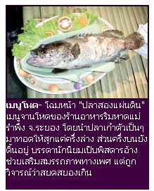 ฮือฮา! เมนูสยอง “ปลาสองแผ่นดิน” เชื่อเพิ่มพลังปึ๋งปั๋ง โพสต์เมื่อ 1 มีนาคม 2550 เวลา 00:00:00 7,550 อ่าน