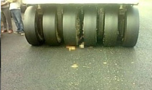 เมื่อวันที่ 25 กันยายนที่ผ่านมา เว็บไซต์เดลิเมลของอังกฤษ เปิดเผยภาพเหตุการณ์สุดสยอง เมื่อรถบดถนนของทางการจีนได้บดทับร่างของชายคนหนึ่งจนเละ หลังชายคนดังกล่าวประท้วงรัฐเวนคืนที่ด้วยการไปนอนใต้ล้อรถบดถนน