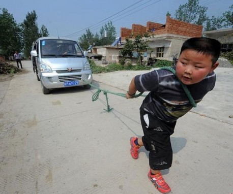 ตอนเรายังเป็นเด็ก ผู้ใหญ่มักบอกให้เรากินเยอะ ๆ โตไปจะได้ตัวใหญ่แข็งแรง ๆ และก็เห็นได้ชัดว่าอาตี๋แก้มยุ้ยคนนี้ คงจะเชื่อฟังที่ผู้ใหญ่สอนจริง ๆ ถึงได้แข็งแรงมากตามที่เว็บไซต์เดลิเมล รายงานเมื่อวันที่ 25 กันยายนที่ผ่านมาว่า เด็กชายชาวจีนคนนี้แข็งแรงมากซะจนสามารถลากรถทั้งคัน!
