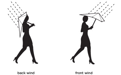 โดยแต่ละด้านของตัวร่มที่มีขนาดไม่เท่ากันดังที่เห็น นอกจากจะช่วยให้ลู่ลมแล้ว ยังกันฝนที่สาดมาจากทางด้านหน้าและด้านหลัง ไม่ให้เปียกมะล่อกมะแล่กทั่วตัวได้เป็นอย่างดีอีกด้วย
